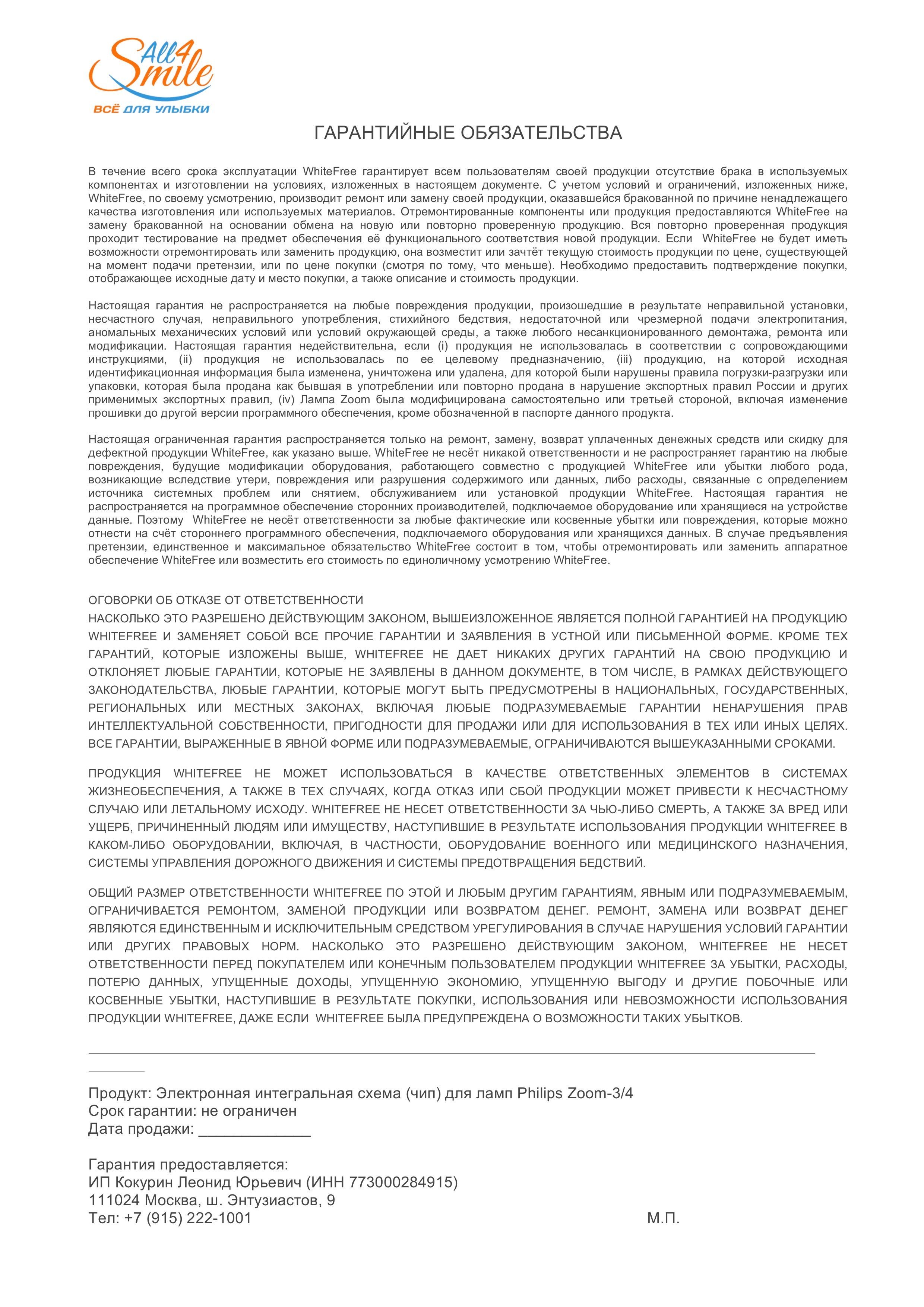 Отказное письмо ВНИИС на безлимитный чип для ламп Philips ZOOM Бессрочная гарантия на безлимитный чип для ламп Philips ZOOM